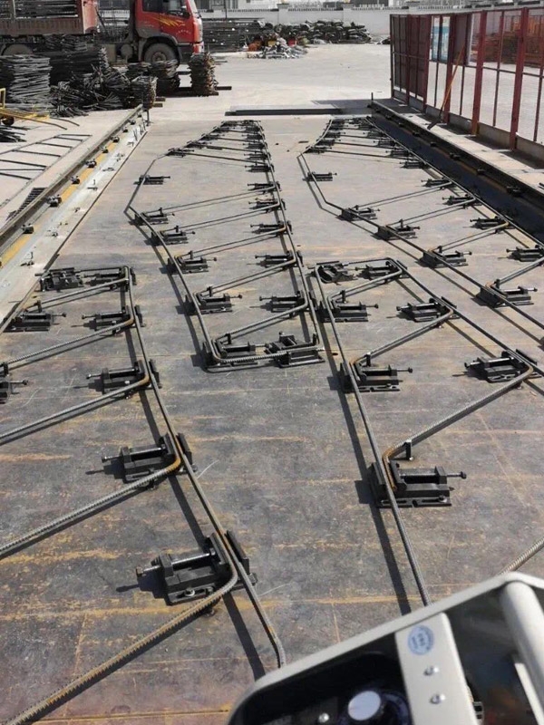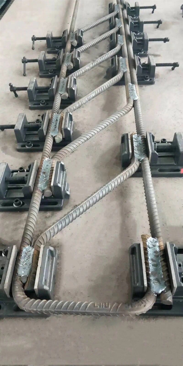 3、將彎曲成型的鋼筋固定到1#與2#定型模板上。